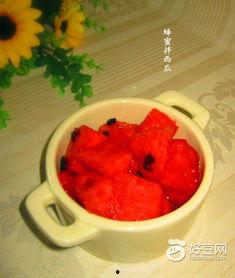 4. 拌制:将切好的口瓜片放入碗中,加入适量的蜂蜜,搅拌均匀。